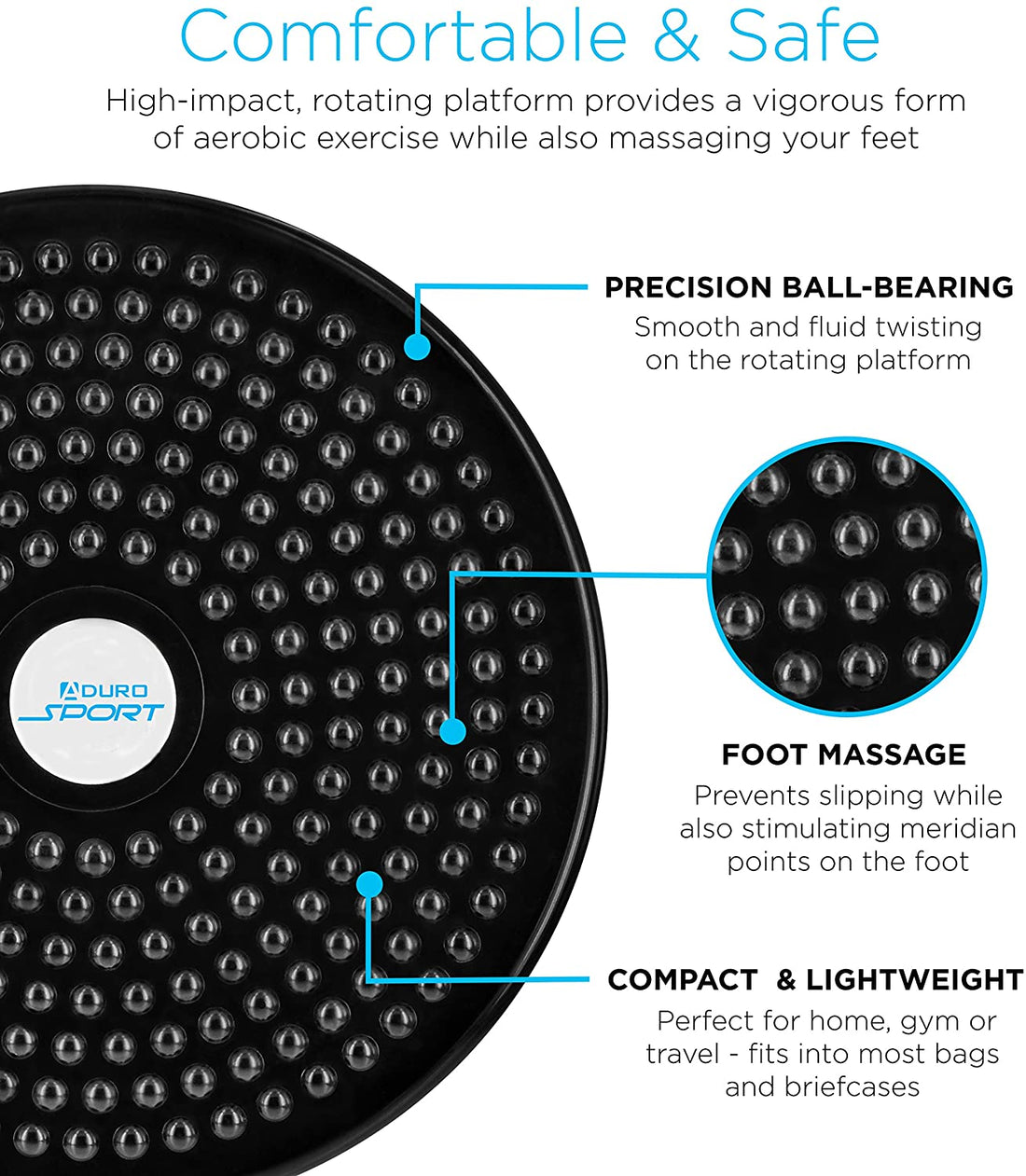 Aids in improving digestion and reducing bloating. It can be used in various positions, including standing, sitting, or lying down. The disc is designed to rotate, providing resistance and increasing the intensity of the workout.